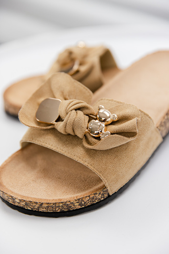 Beżowe klapki z eco skóry ze złotymi aplikacjami