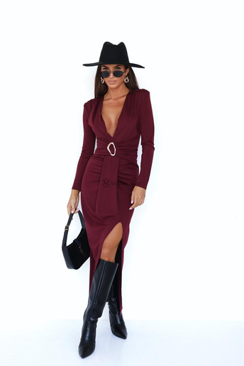 Dopasowana sukienka z rozporkiem Lana bordowa