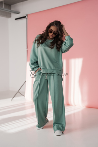 Prążkowany komplet z klamrami Pati bluzka i spódnica zielony