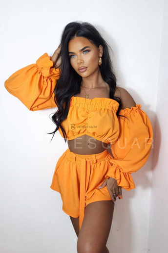 Letni lniany śmietankowy komplet Fame Icon spodenki i wiązana bluzka