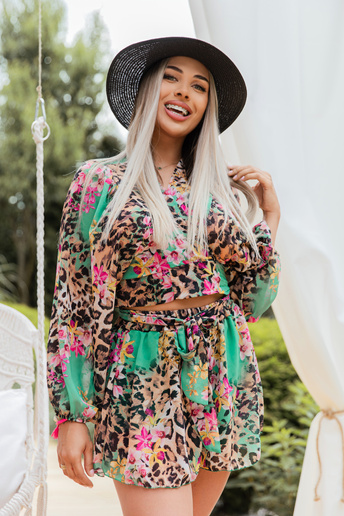 Komplet Regine spodenki i bluzka zielony kwiatowy wzór