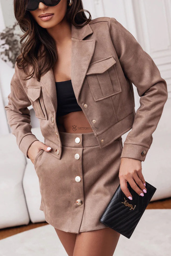 Komplet welurowy ze spódnio-spodenkami Bliss beżowy