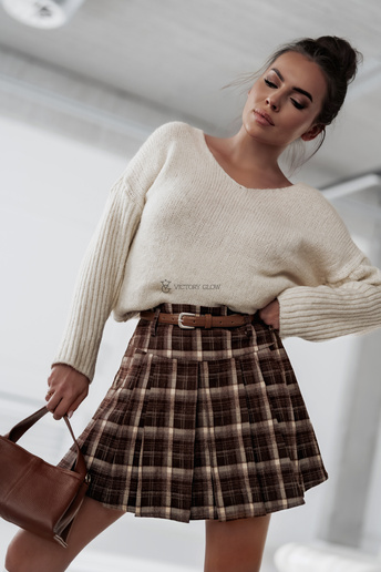 Spódnica mini w kratę z paskiem London brązowa