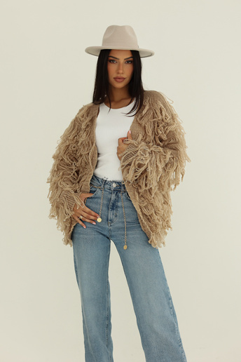 Miękki sweter z frędzlami Calla beżowy