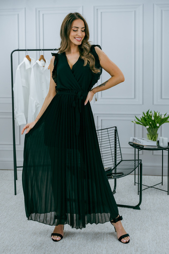 Czarna plisowana sukienka Lorenza z wiązanym paskiem