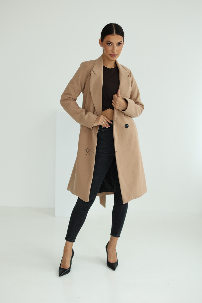 Klasyczny krótki płaszcz Marina z kieszeniami karmelowy