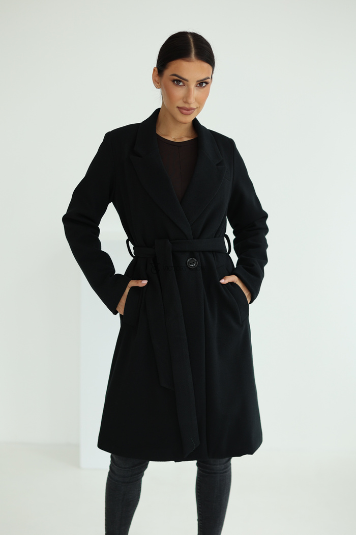 Klasyczny wełniany czarny płaszcz bez podszewki Marina