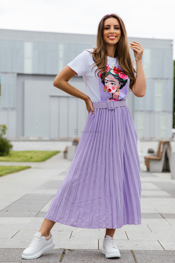 Plisowana spódnica midi z paskiem Vlasta fioletowa