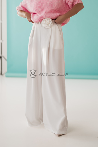 Spodnie z paskiem i ściągaczem w nogawce Meli białe
