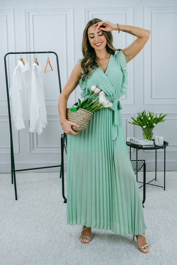 Zielona plisowana sukienka Lorenza z wiązanym paskiem