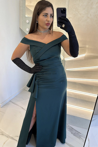 Dopasowana sukienka dzianinowa Dolores dekolt carmen czarna