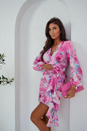 Dopasowana sukienka z marszczeniami i różą Sue różowe kwiaty