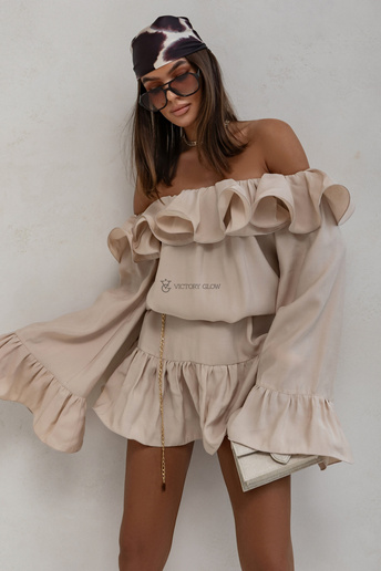 Kopertowa śmietankowa sukienka Fame Icon z wiązanym sznurkiem