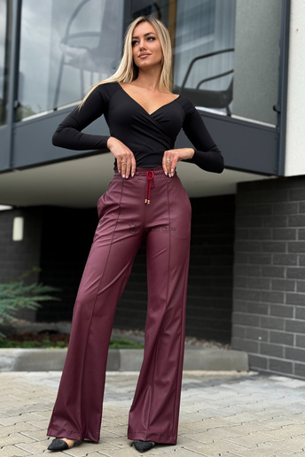 Spodnie z wysokim stanem eko skóra Surya bordowe