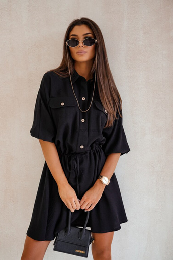 Komplet w kwiaty La Diva spodenko-spódnica i bluzka czarno różowy