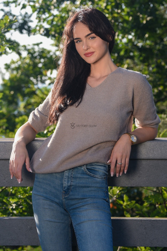 Miękki sweter Baby Alpaka z rękawem 3/4 beżowy