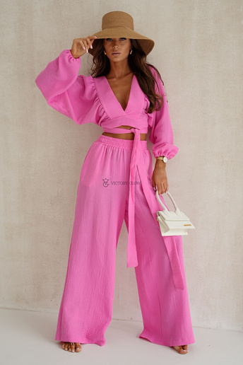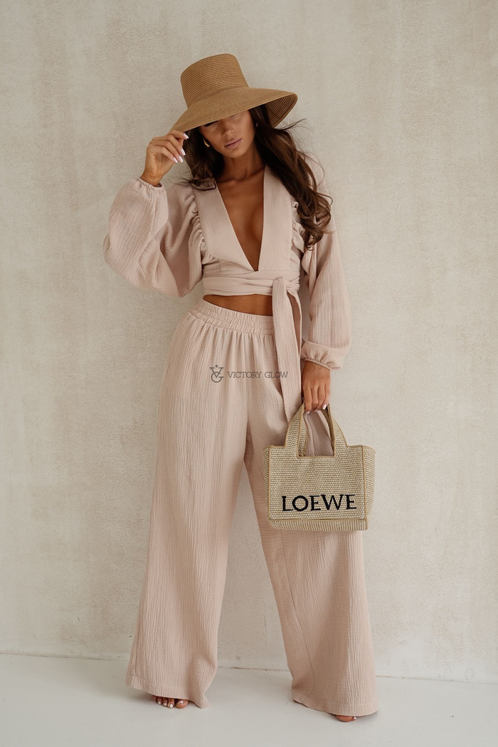 Elegancki komplet bluzka i spodnie Peach brzoskwiniowy