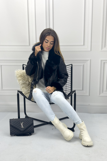 Krótka kurtka pikowana z wysoką stójką Oriana czarna
