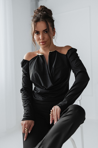 Dopasowana bluzka w prążek z różą Iga bordowa