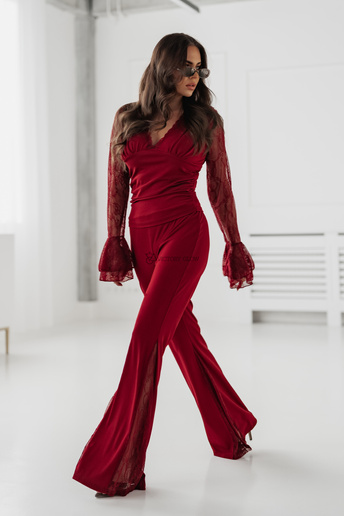 Cekinowy kombinezon kopertowy Big Stars bordowy
