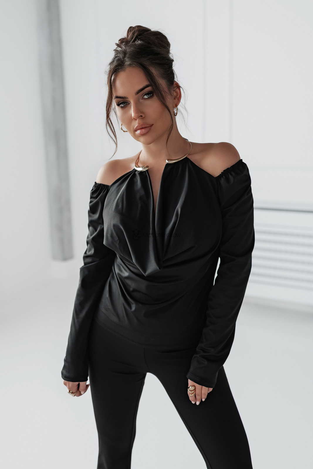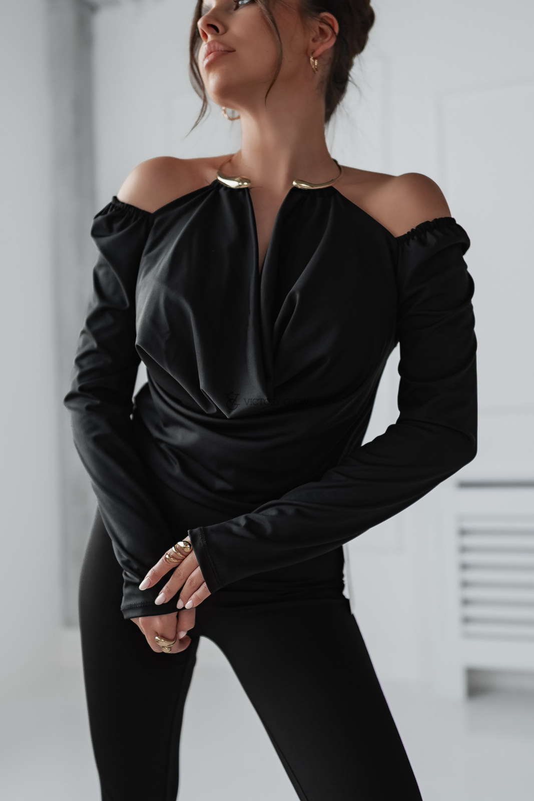 Bluzka z biżuteryjnym dekoltem Gabby czarna