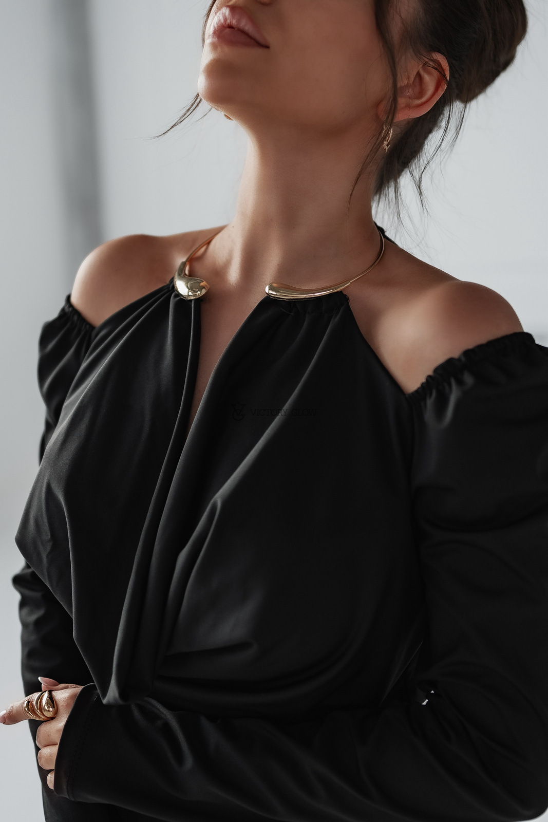 • Dopasowana bluzka z biżuteryjnym dekoltem