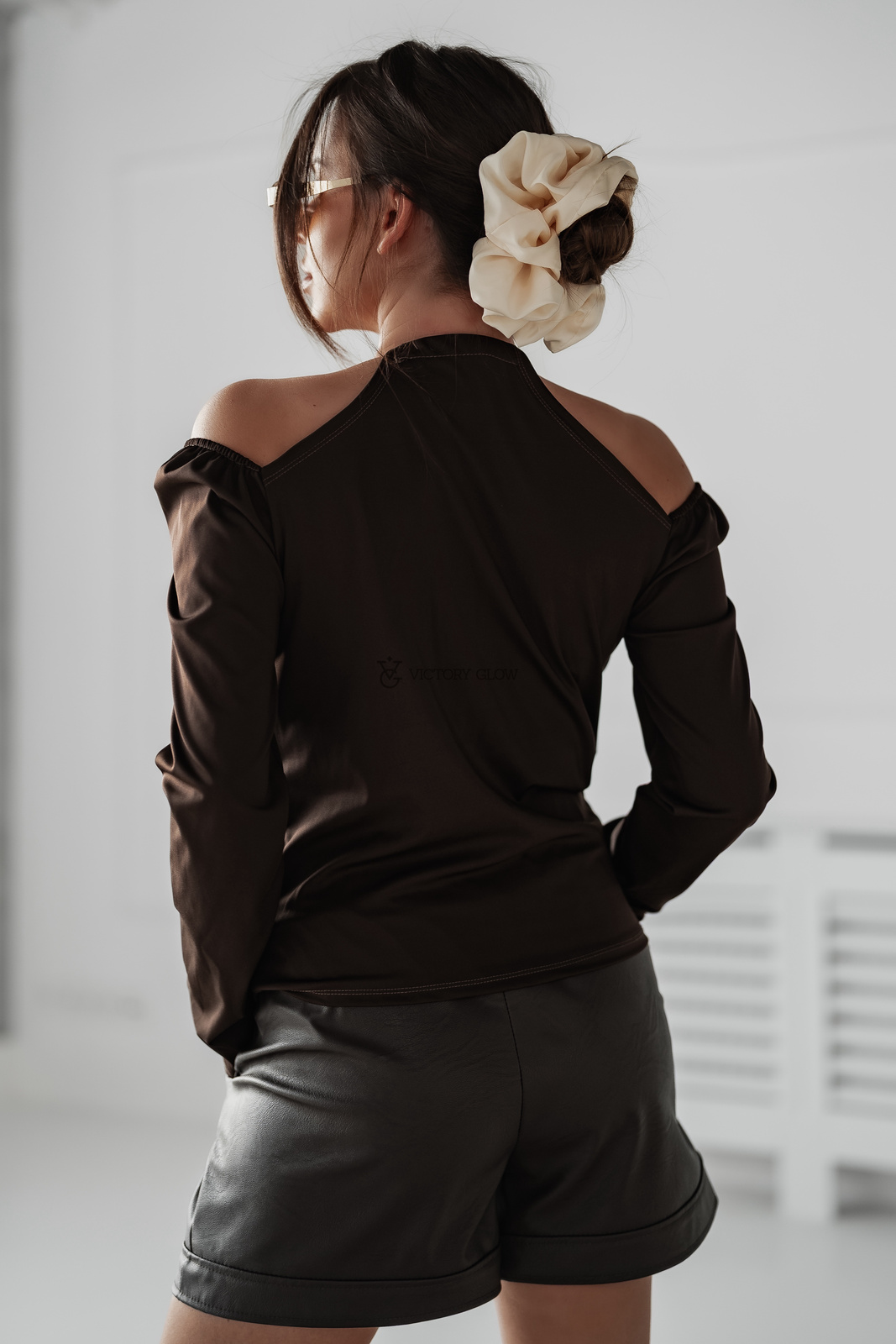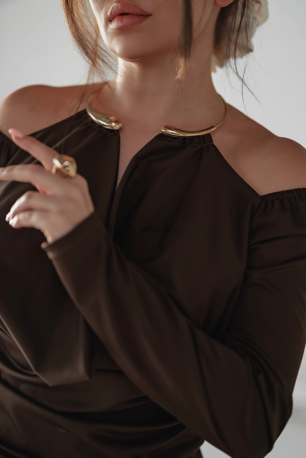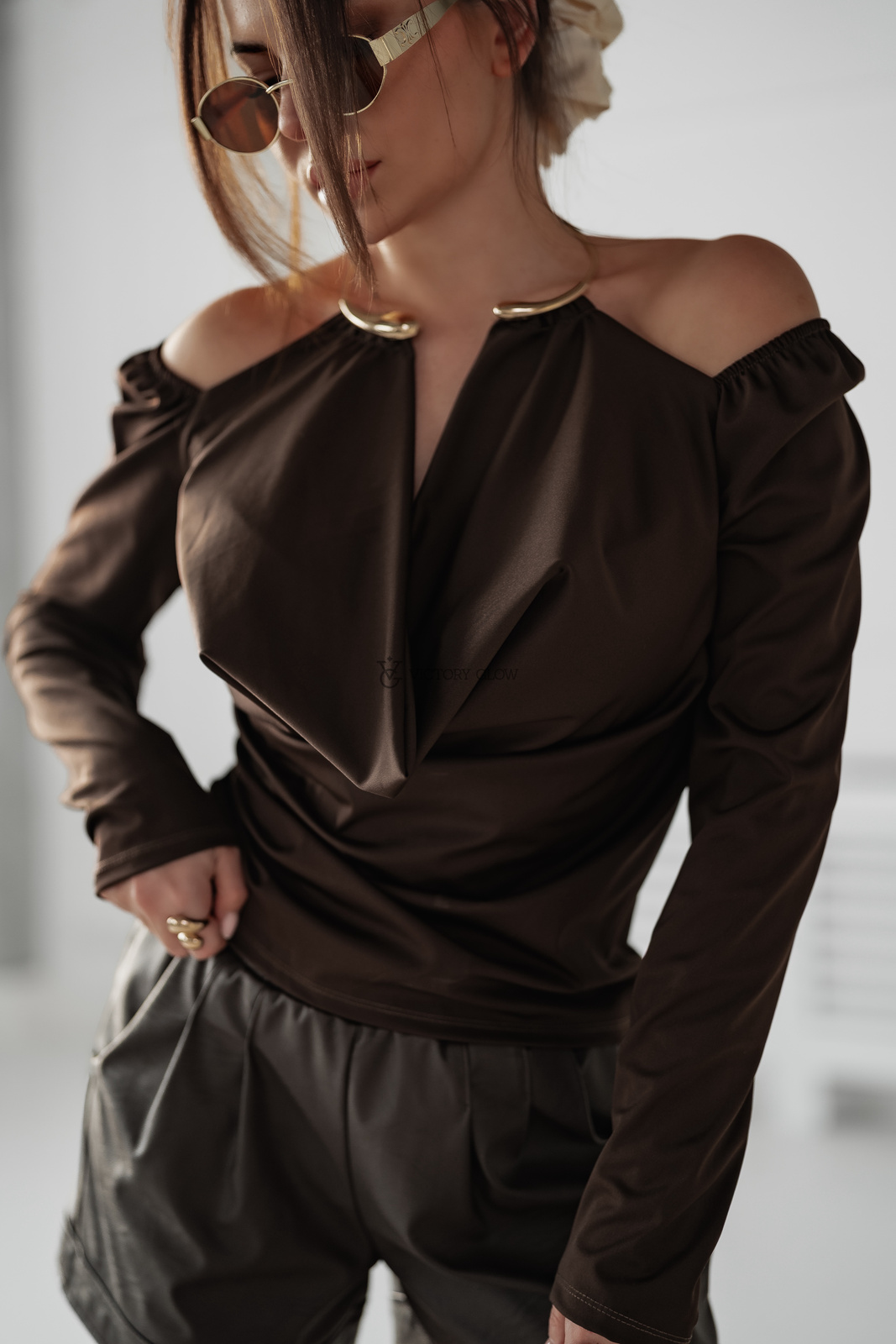 Bluzka z biżuteryjnym dekoltem Gabby czekoladowa