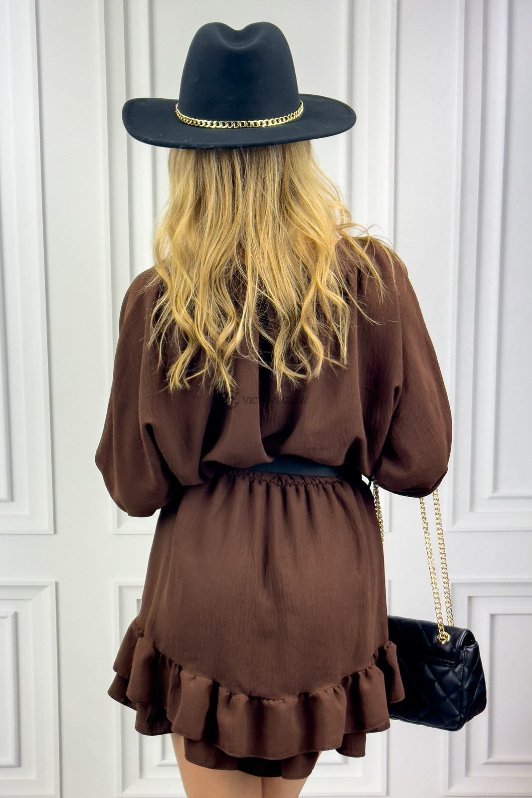 Krój mini zapewnia kobiecy i odważny wygląd, idealny na wieczorne wyjścia lub spotkania towarzyskie.