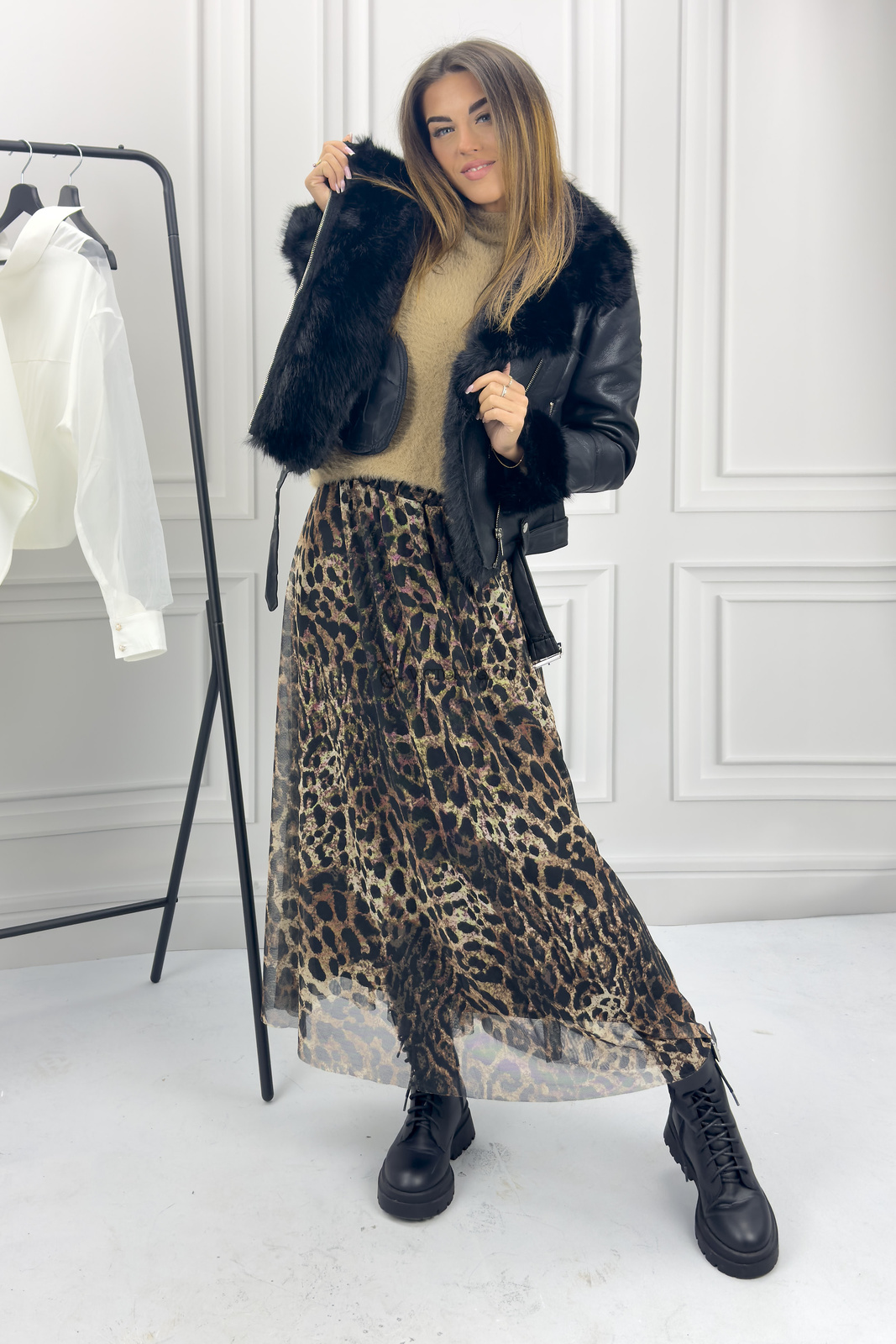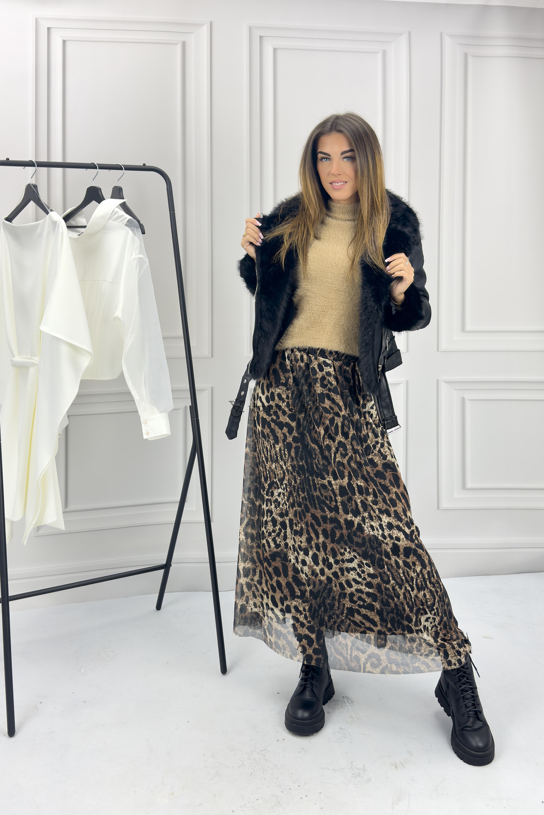 Wykonana z miękkiej, ekologicznej skóry i wykończona sztucznym futerkiem.