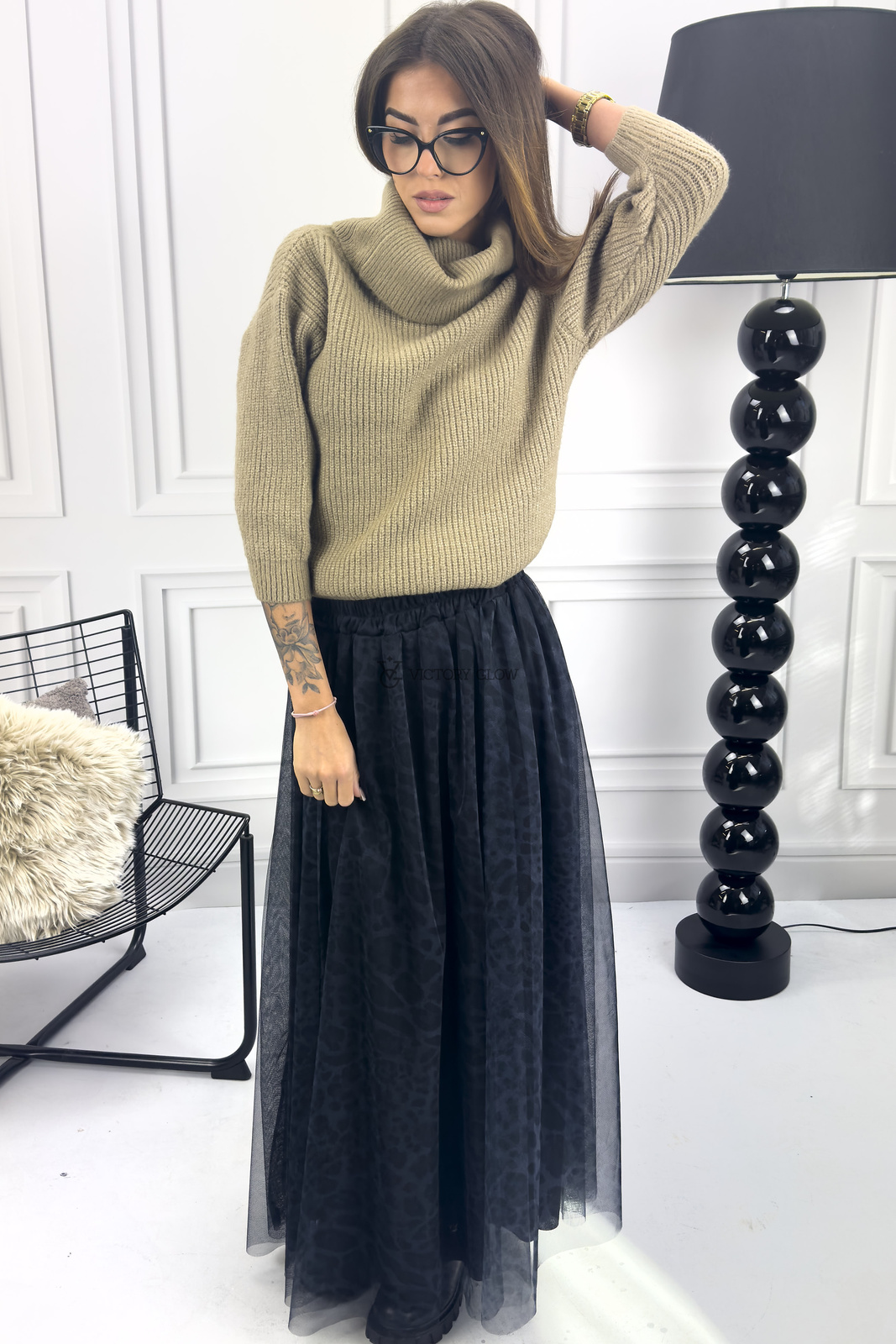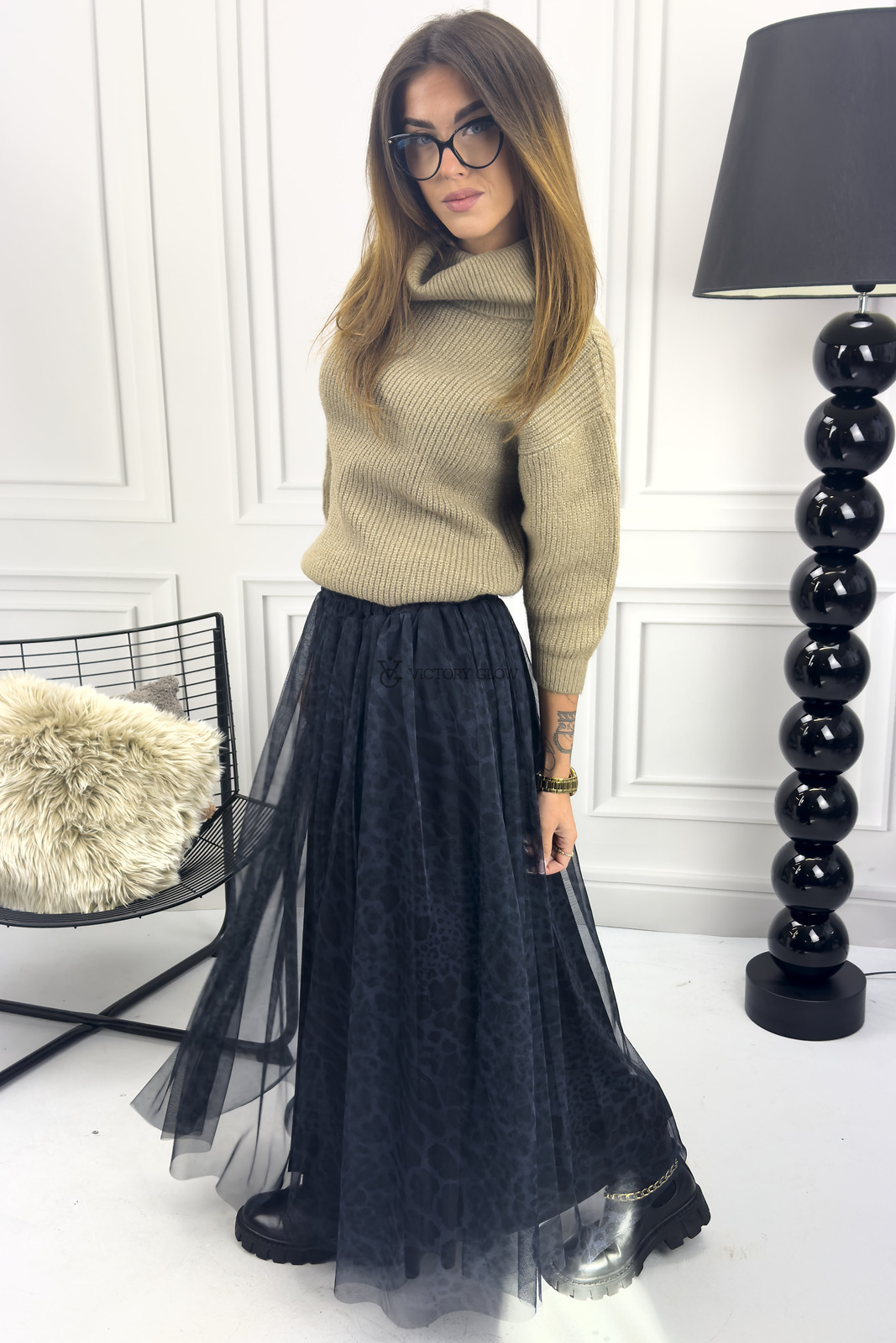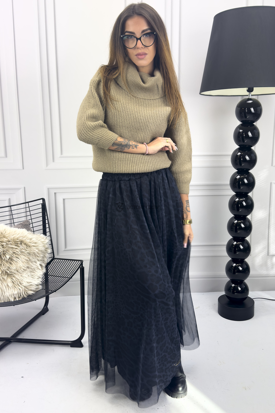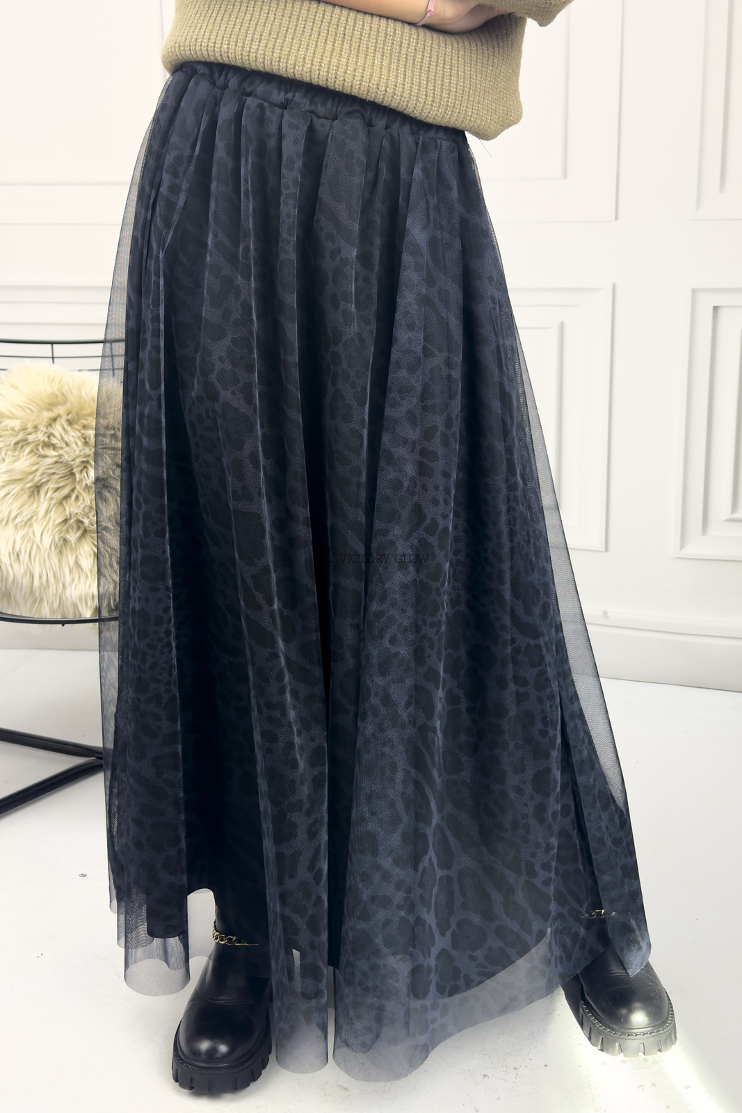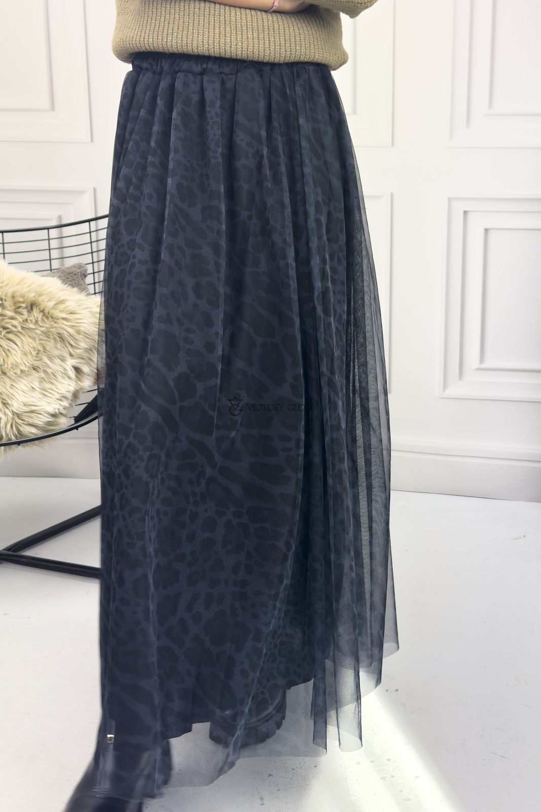 Długa spódnica tiulowa Agłaja wzór panterka szaro czarna