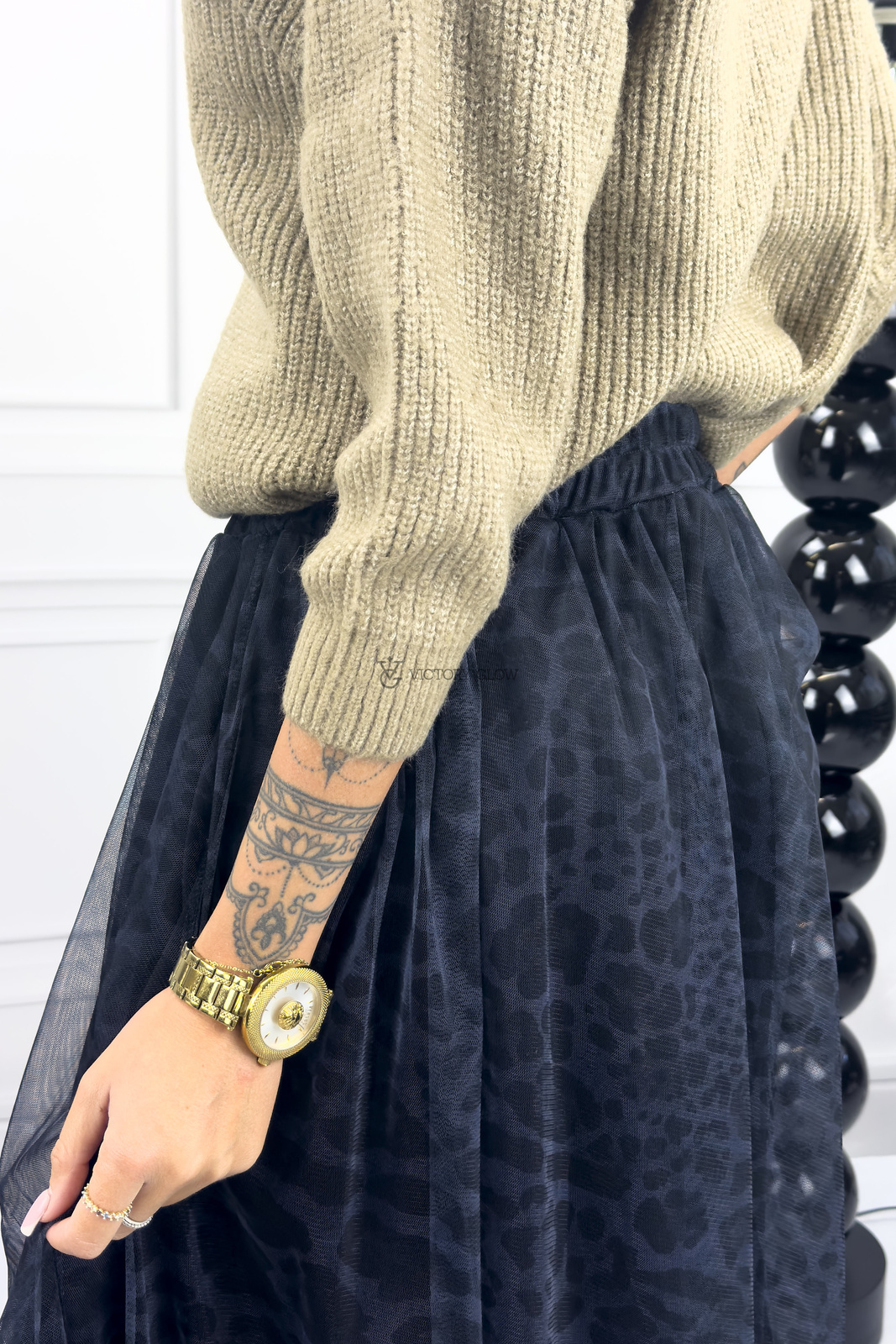 Wyjątkowa tiulowa spódnica z najmodniejszym tym sezonie wzorem w panterkę, zdecydowanie powinna znaleźć się w każdej garderobie!