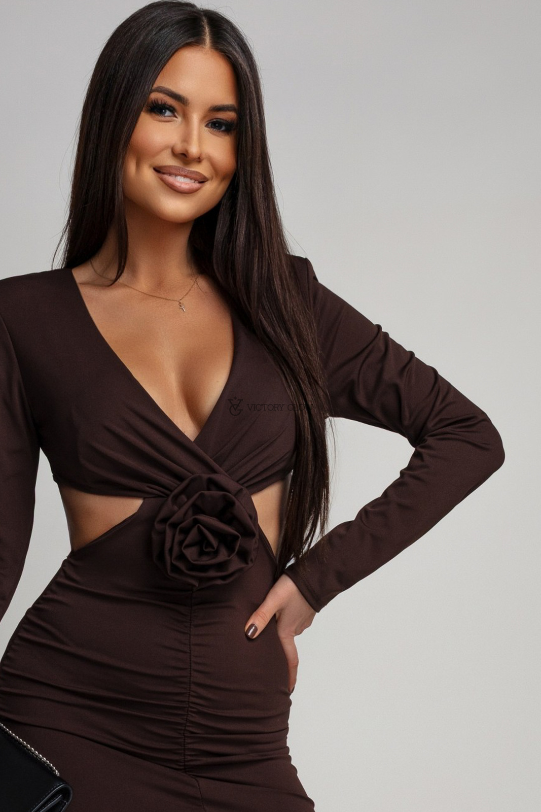 Długa sukienka z wycięciami w talii Layla czekoladowa