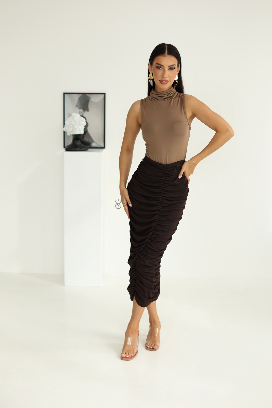 Dopasowana spódnica w prążek Veruca czekoladowa