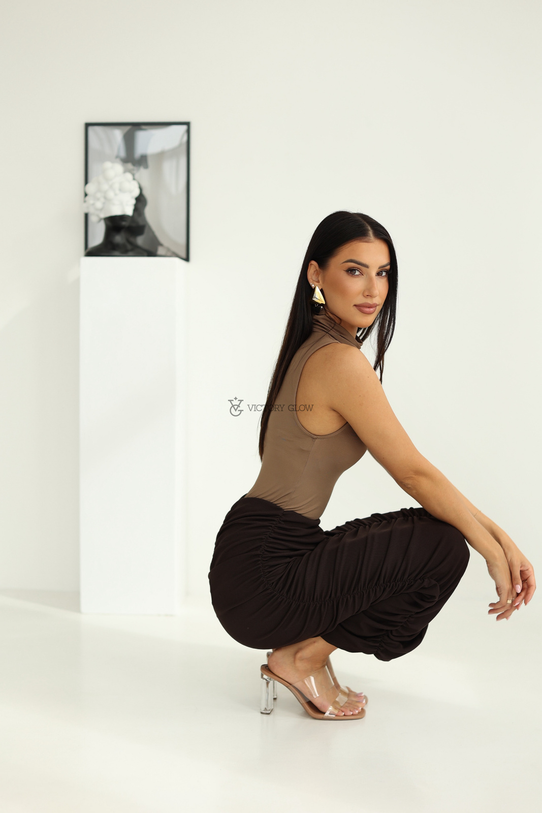 Marszczenia po bokach i z przodu dodają jej nie tylko wyjątkowego charakteru, ale także subtelnie modelują figurę, tworząc efekt wysmuklenia.