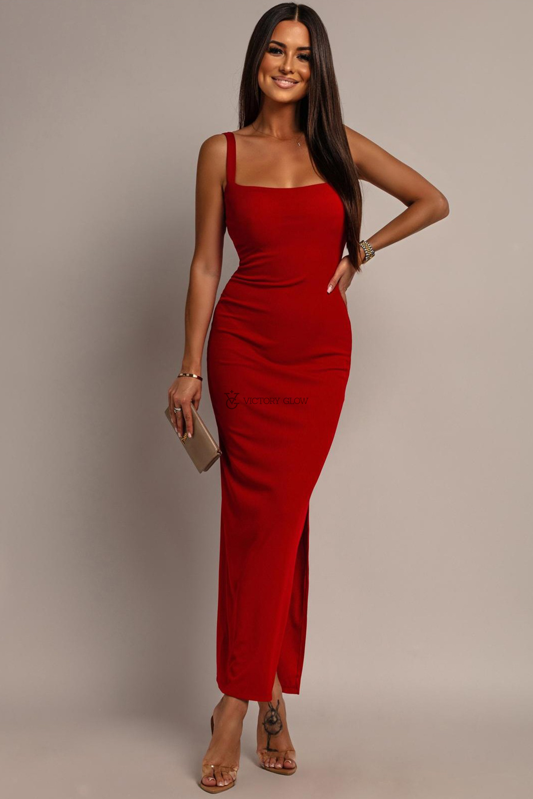 - Dopasowana sukienka maxi z odkrytymi plecami