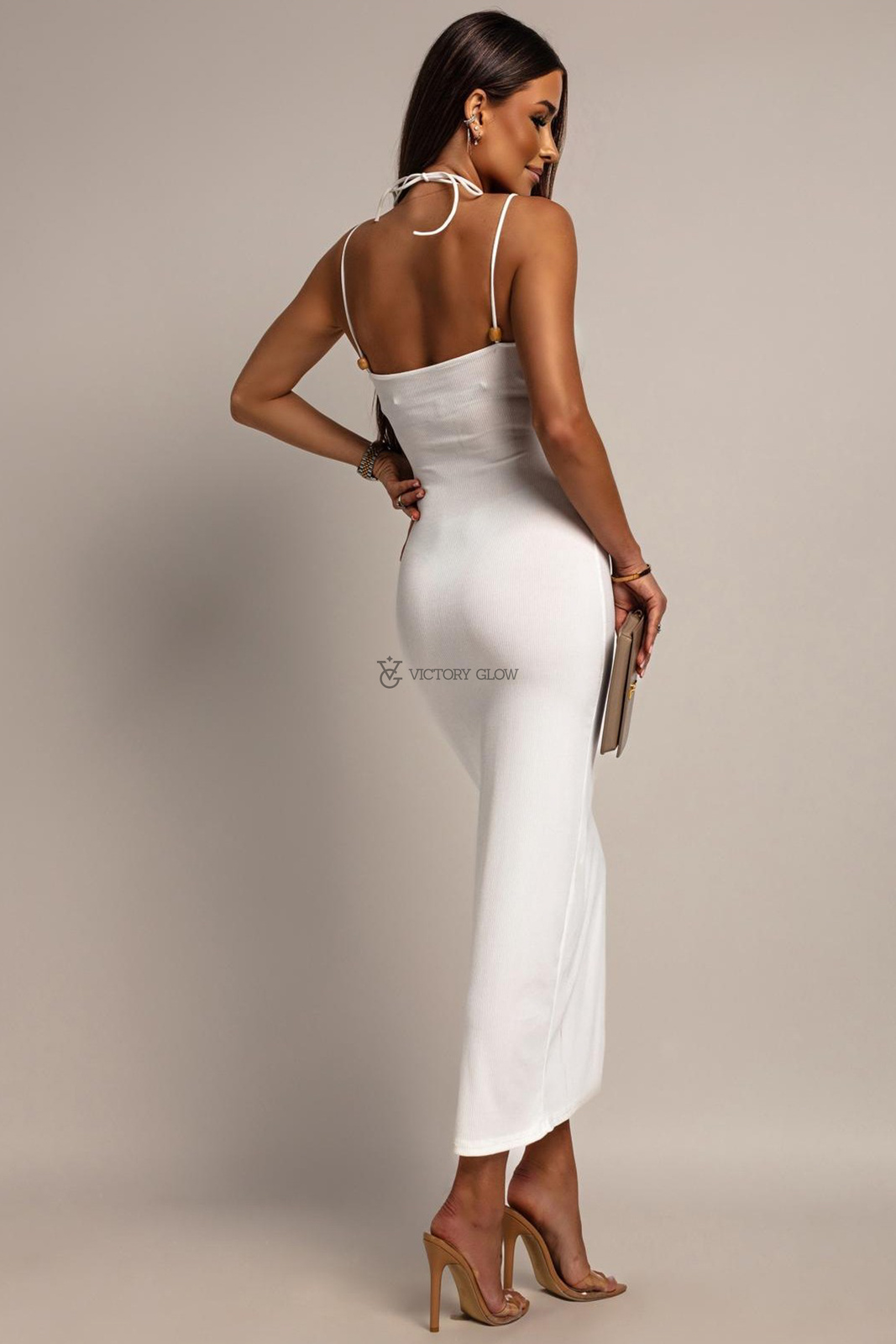 Rozporek z boku dodaje lekkości i kobiecego uroku, czyniąc tę sukienkę idealną propozycją na wyjątkowe okazje – od romantycznej kolacji po wesele czy wieczorne wyjście.