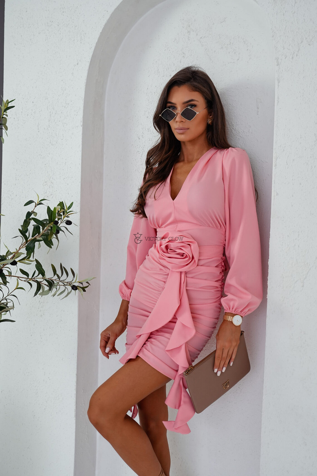 Dopasowana sukienka z marszczeniami i różą Sue brzoskwiniowa