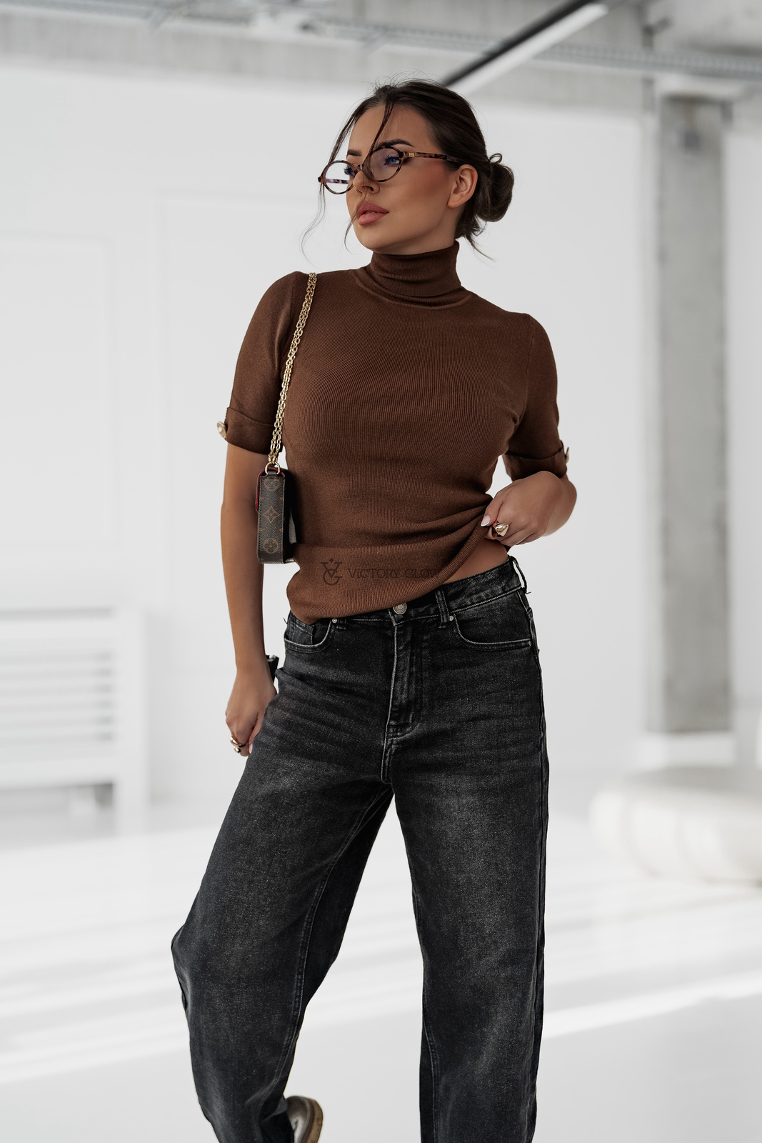 Dopasowany sweter golf z krótkim rękawem Oliwia czekoladowy