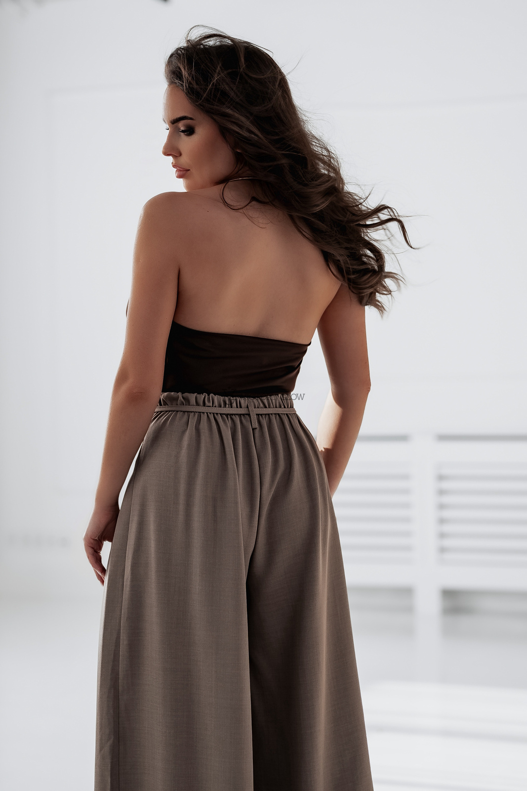 Efektowne body z głębokim dekoltem Gabby czekoladowe