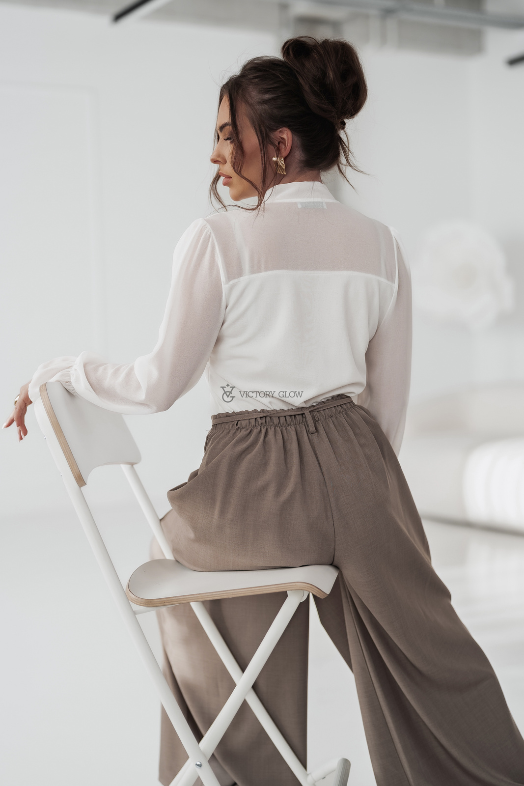 Bluzka posiada częściową podszewkę, która zapewnia komfort noszenia, jednocześnie zachowując lekkość i zwiewność materiału. Idealna zarówno do biura, jak i na wyjątkowe okazje – świetnie komponuje się zarówno ze spodniami, jak i spódnicą.