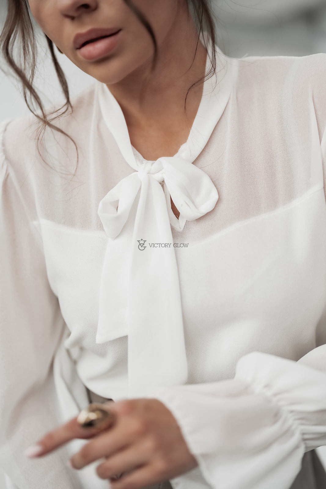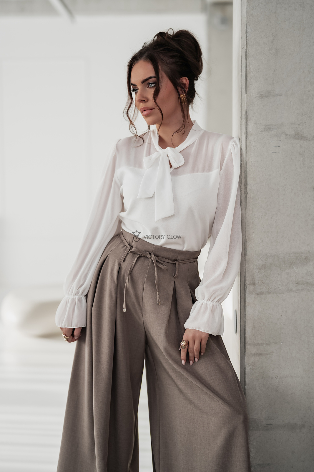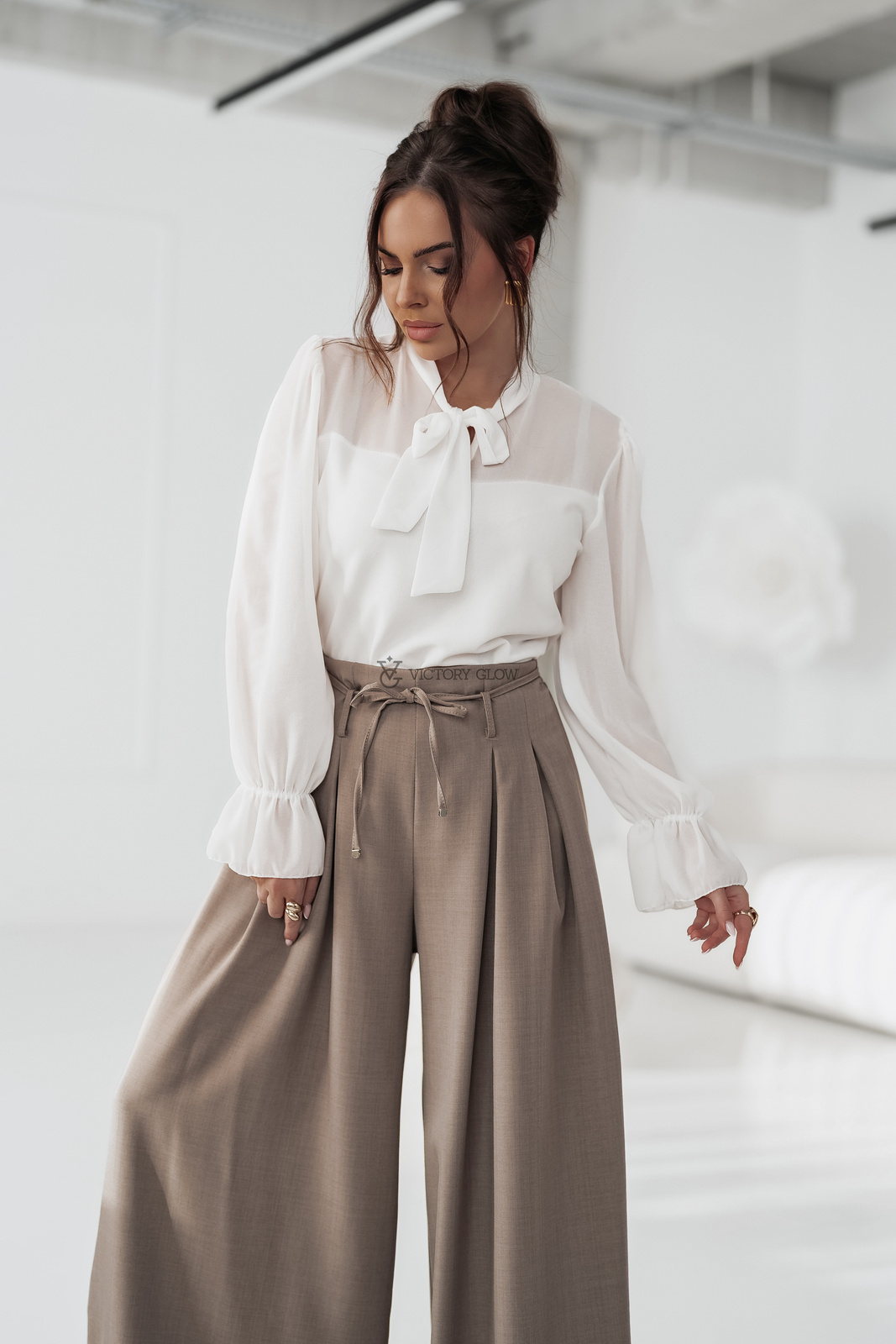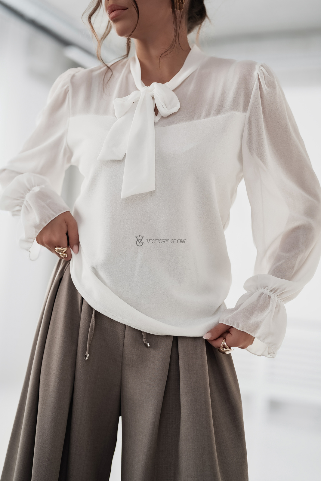 - Elegancka bluzka z szerokimi rękawami i wiązaniem pod szyją