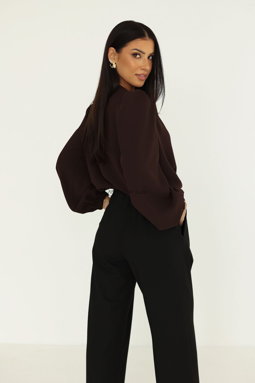 Elegancka bluzka z kwiatem Rose brązowa