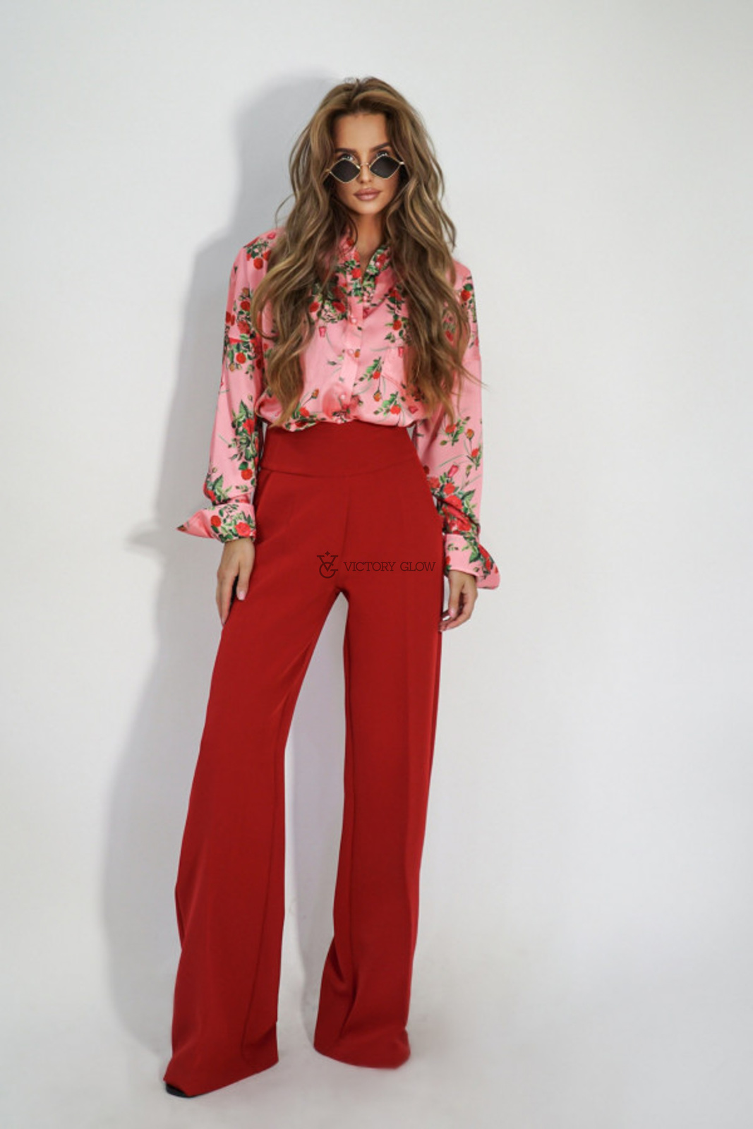 Eleganckie spodnie z szeroką nogawką Sanya czerwone
