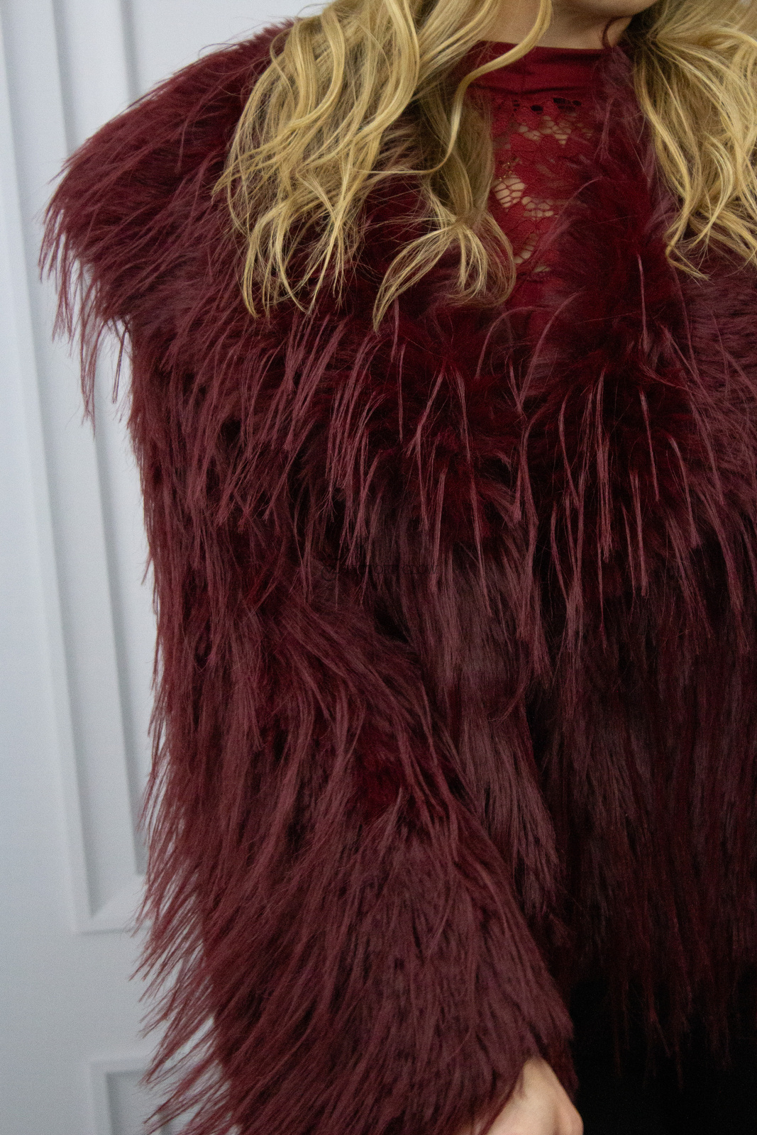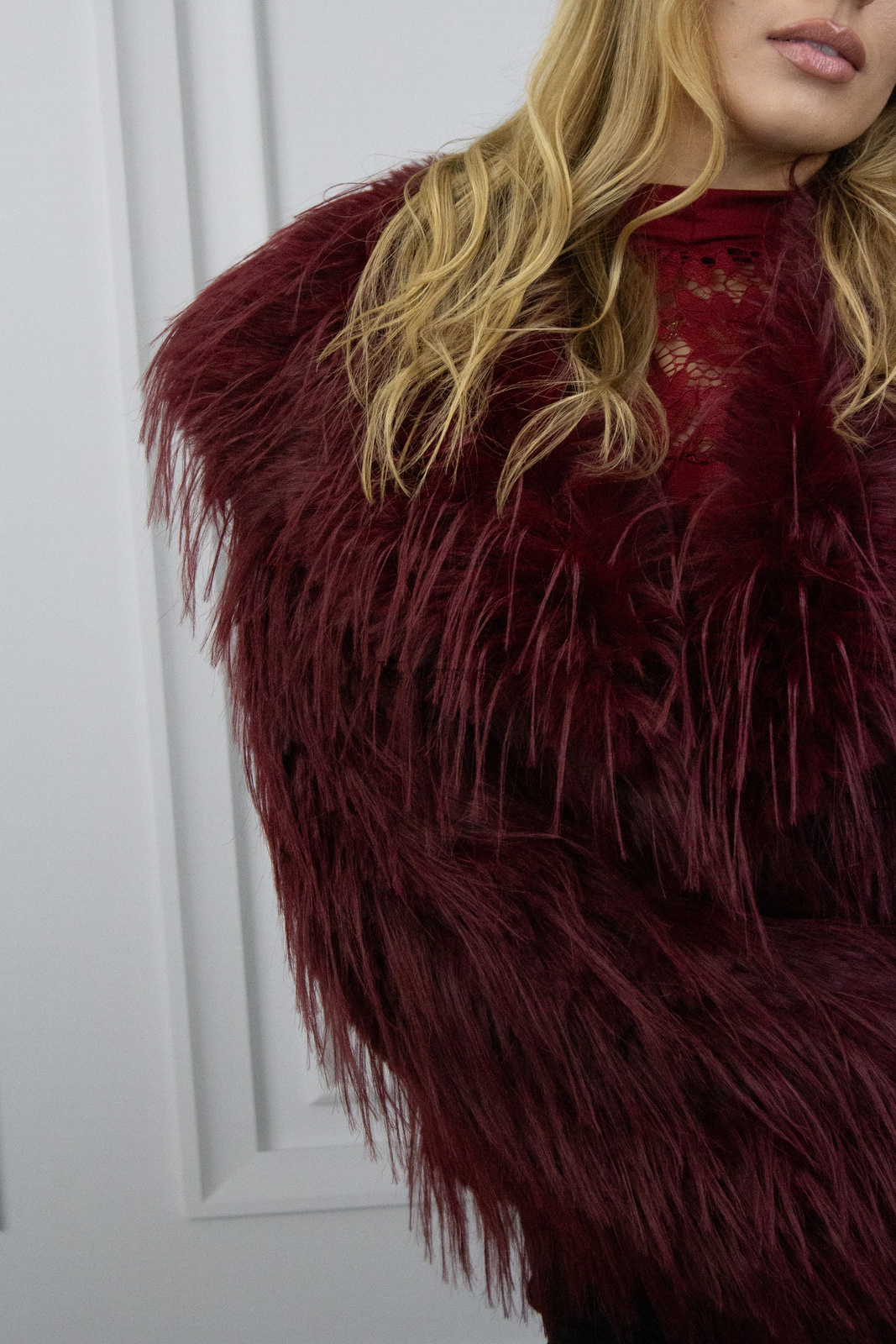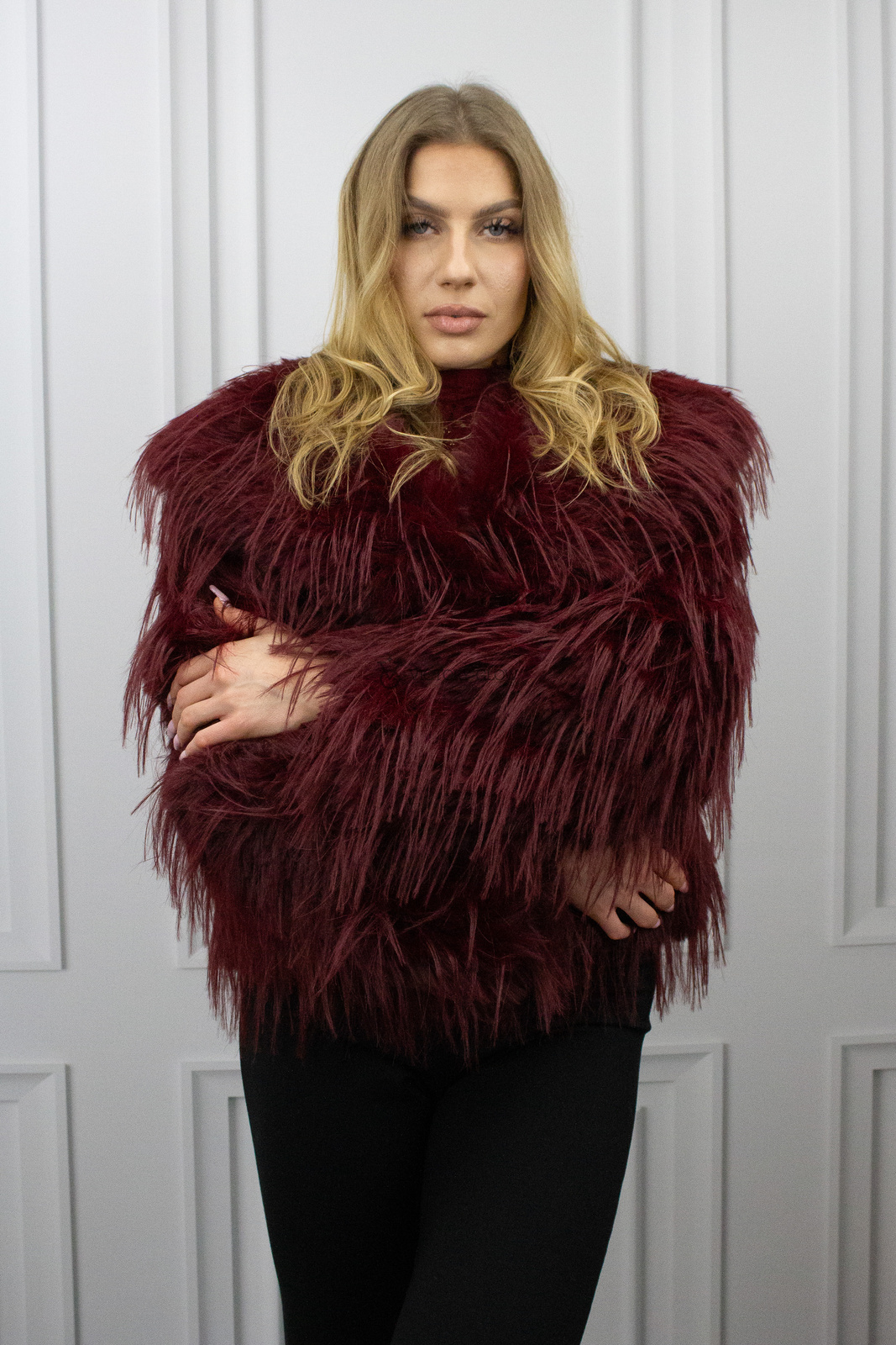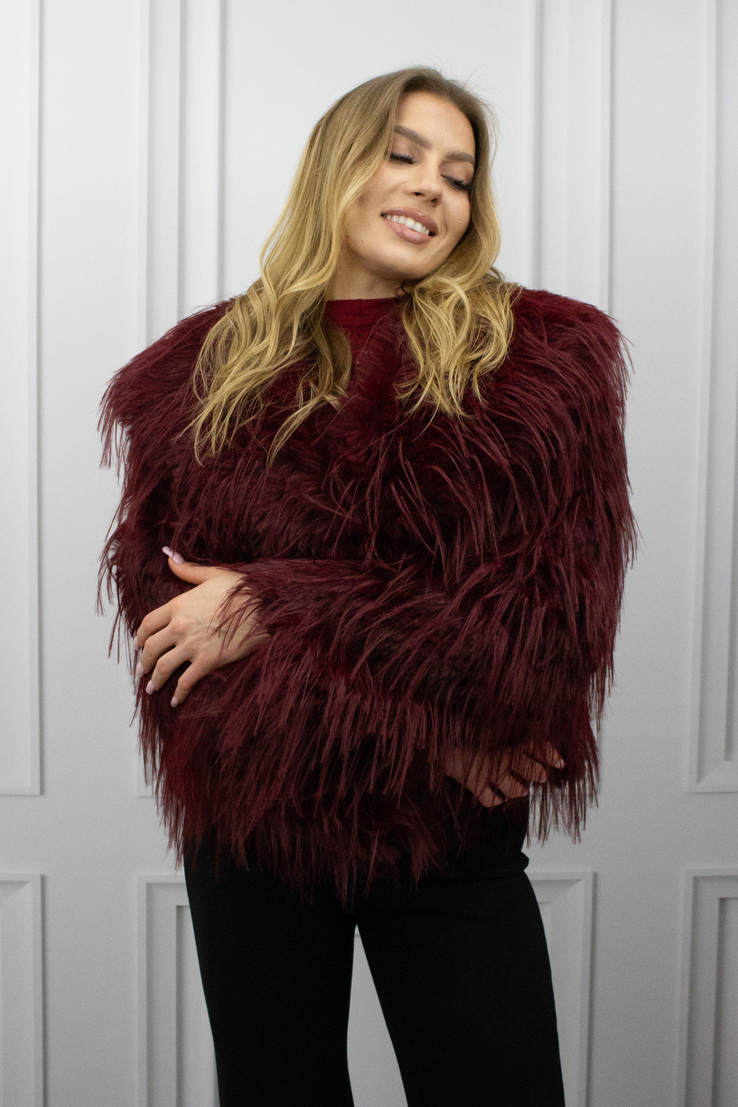 - Krótkie, puszyste futerko z dużym kołnierzem