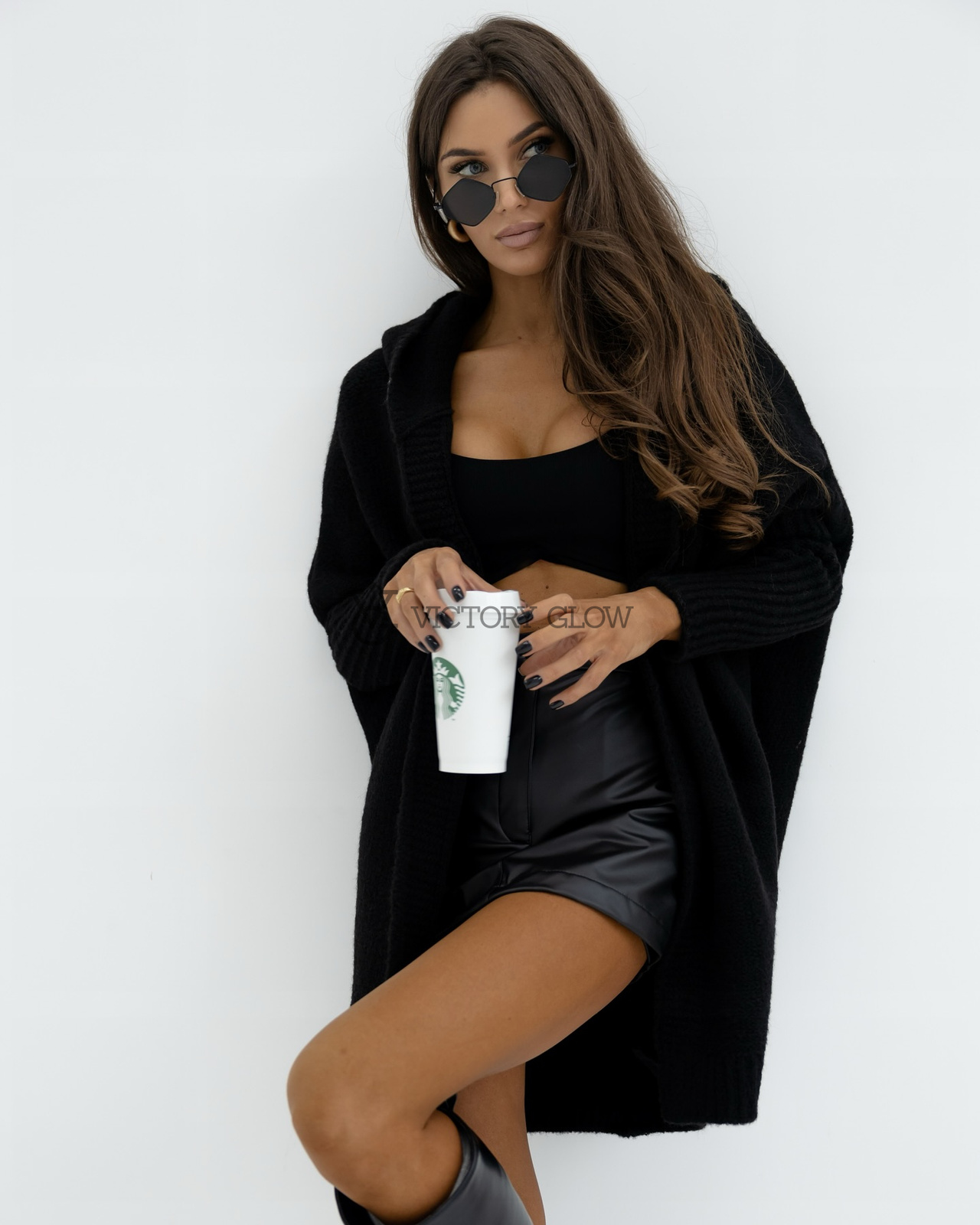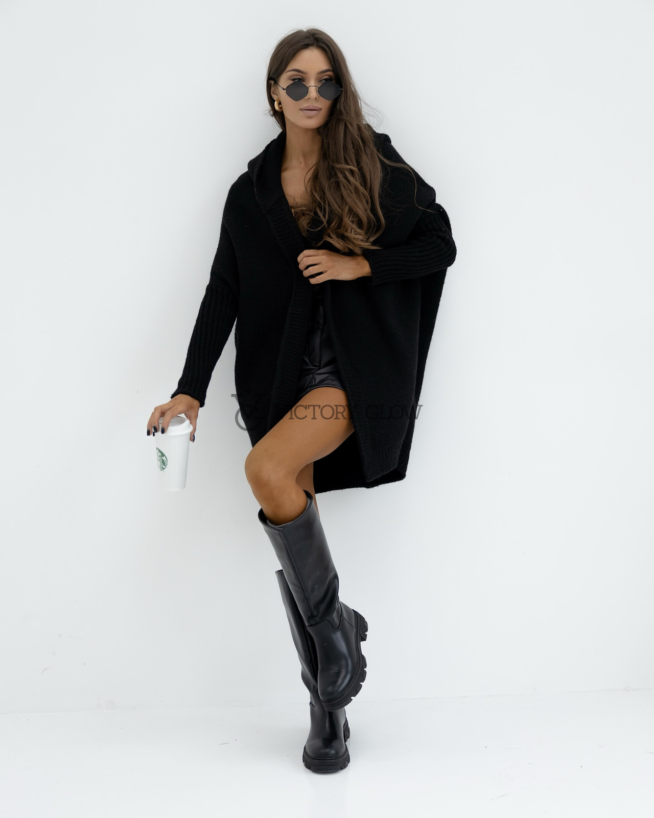- Długi sweter bez zapięcia o fasonie oversize z kapturem