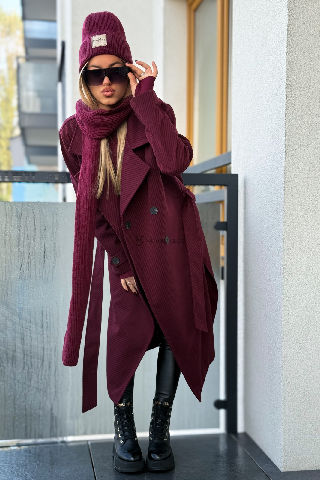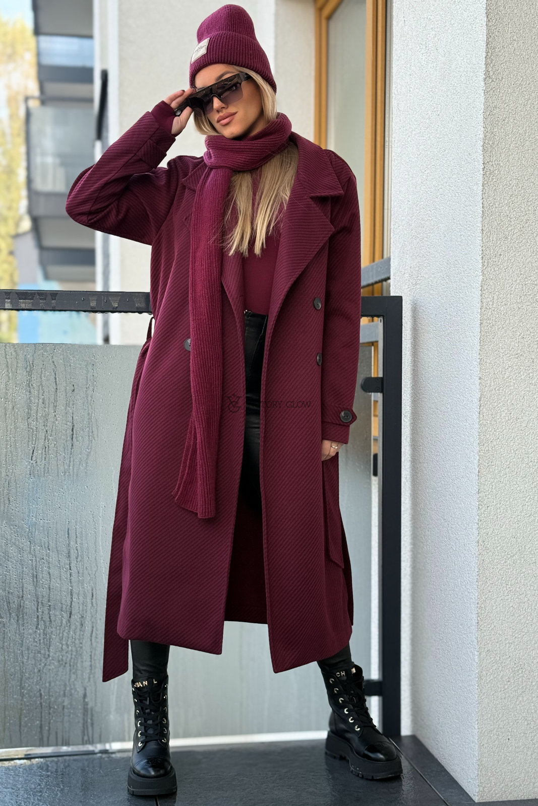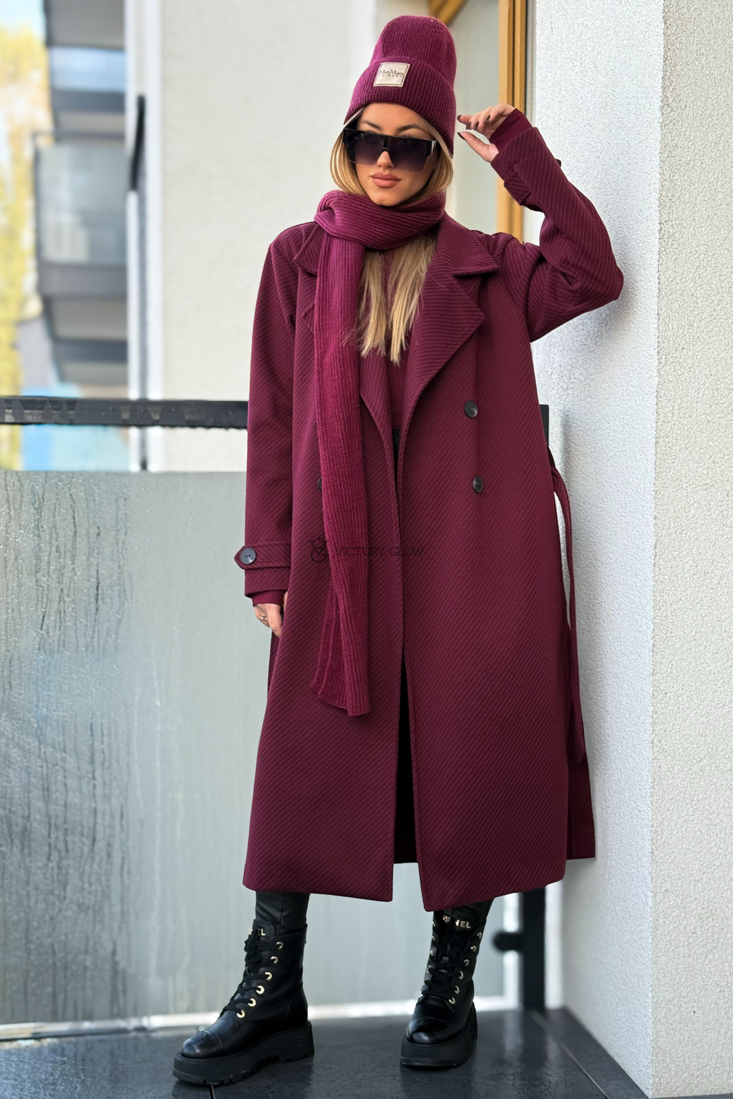 Klasyczny wełniany płaszcz bez podszewki Marina bordo