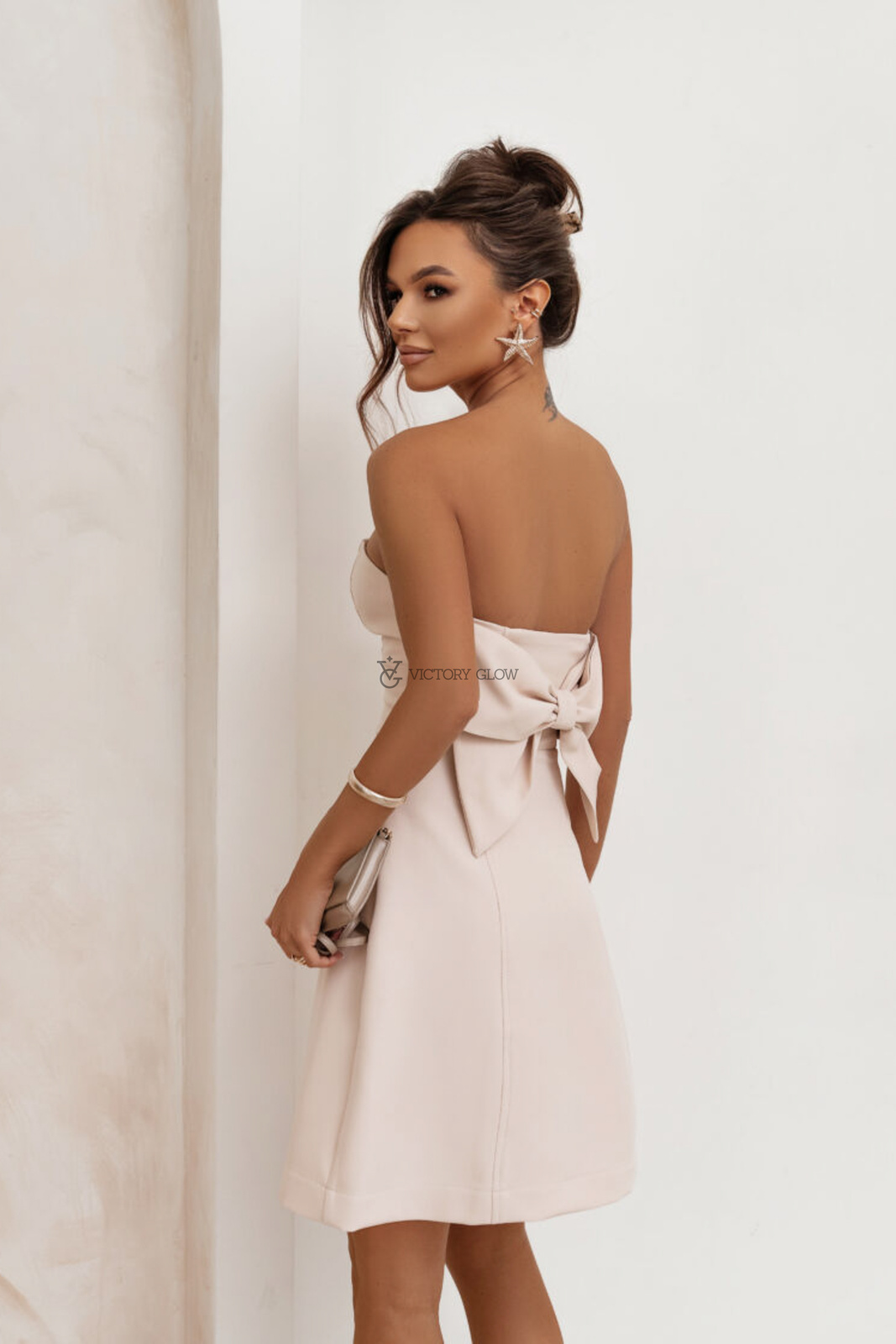 Koktajlowa sukienka z kokardą Cheri beżowa