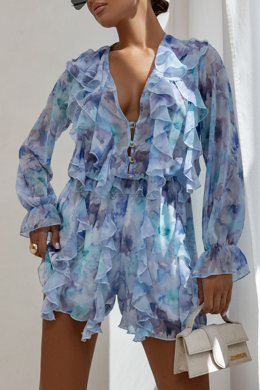 Kombinezon z falbanami w kwiaty Luna błękitny