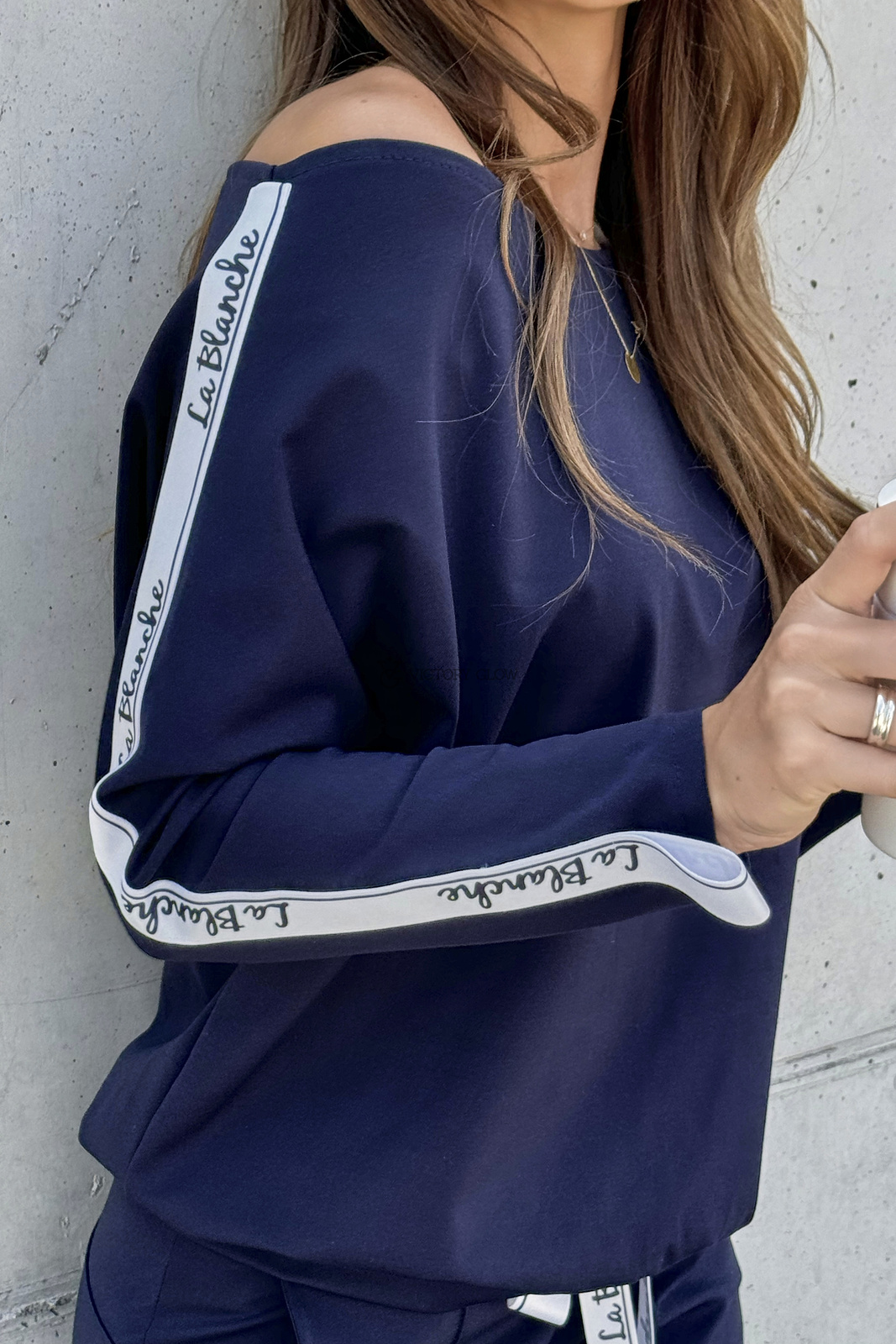 Bluza o kroju nietoperz posiada szeroki dekolt, który świetnie zaprezentuje się opuszczony na ramiona.