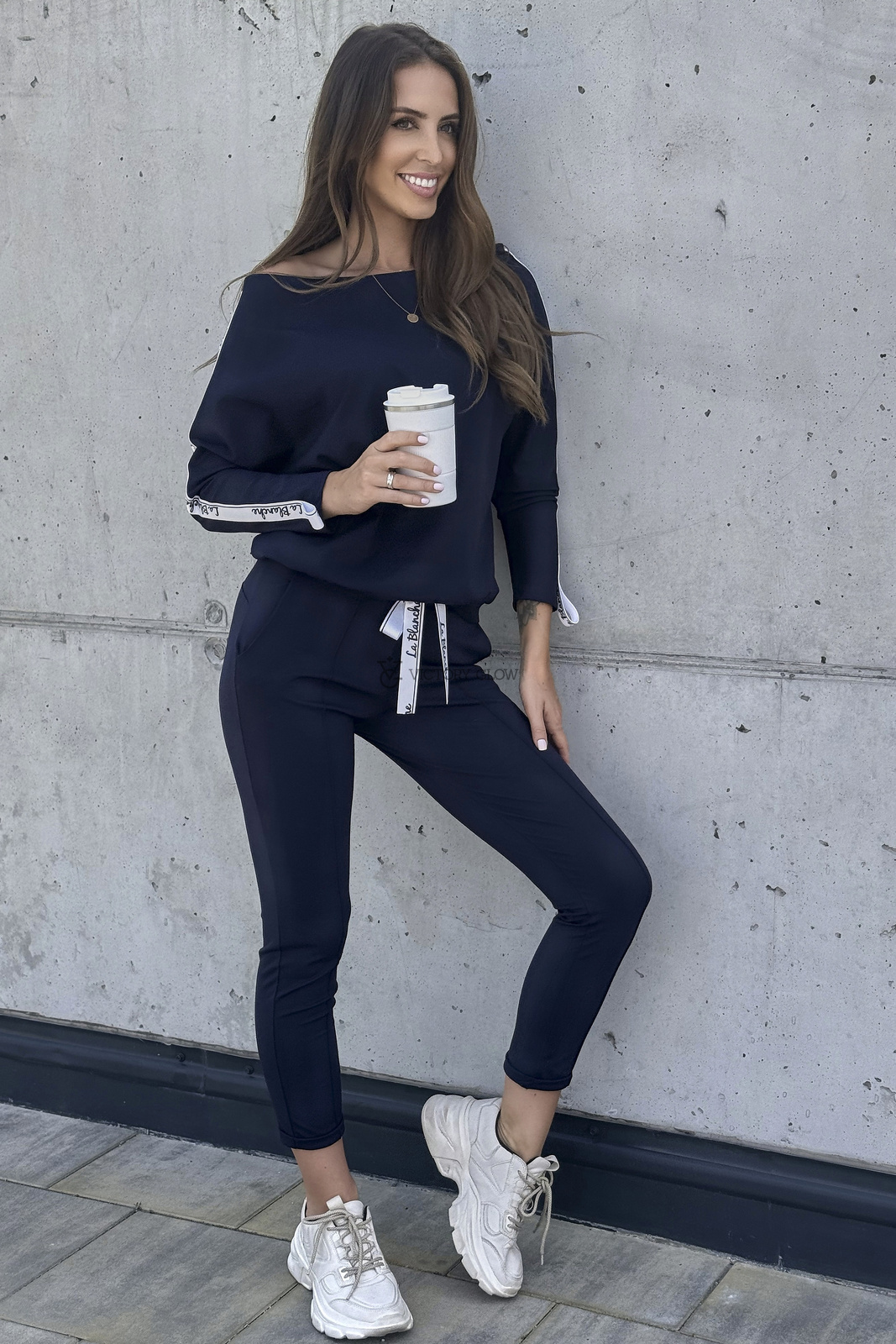 • Elastyczny komplet w sportowym stylu z kontrastowymi lamówkami